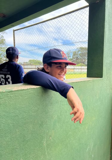 Nico, mesmo enfrentando o cansaço, a dualidade de maturidade, um jogo mais rápido, erros e a saudade do seu próprio time, sempre diz que quer jogar lá. O jogo fica mais divertido, mais difícil — vira MLB de verdade: regras completas, bola de couro e aquele som seco e limpo no contato, trimmmm, que arrepia. Lá ele sente o jogo que sonha jogar.