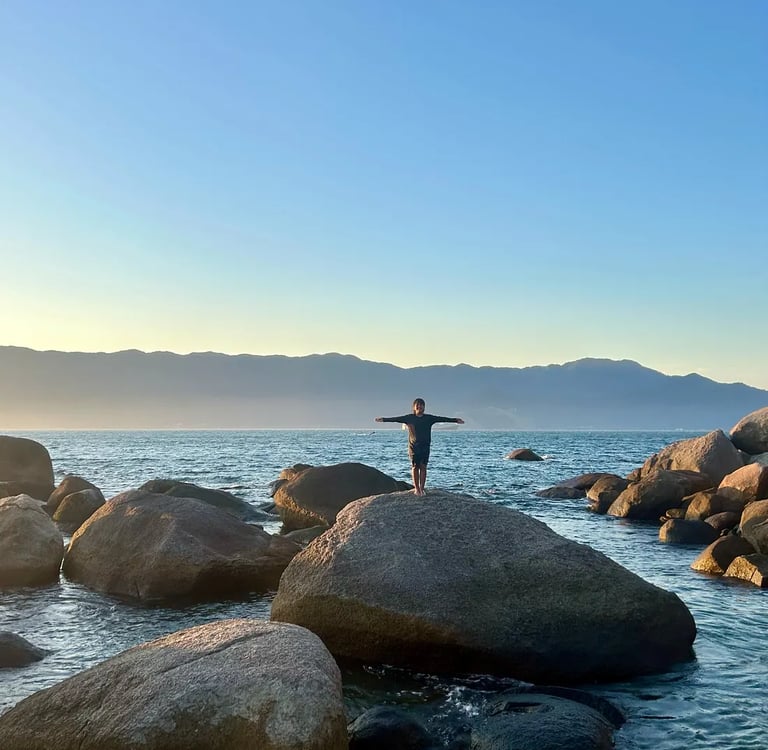 Nico Cabral, na Praia das Conchas na bela Ilhabela