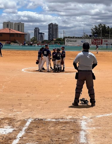 Até que o sensei Fabrício pediu um tempo e foi lá no montinho.. Um olhar, algumas palavras, e os meninos voltaram — não perfeitos, mas presentes. Então, entrou o pitcher mais novo, que está treinando sem descanso para merecer o montinho. Não para virar o placar; mas para segurar o chão. E segurou. Tomou pancada, sim, mas ficou firme, inteiro. Não perdeu o eixo. E a defesa conseguiu trabalhar. O jogo terminou digno e não desmoronou. E eles passaram por isso tudo ainda maiores.