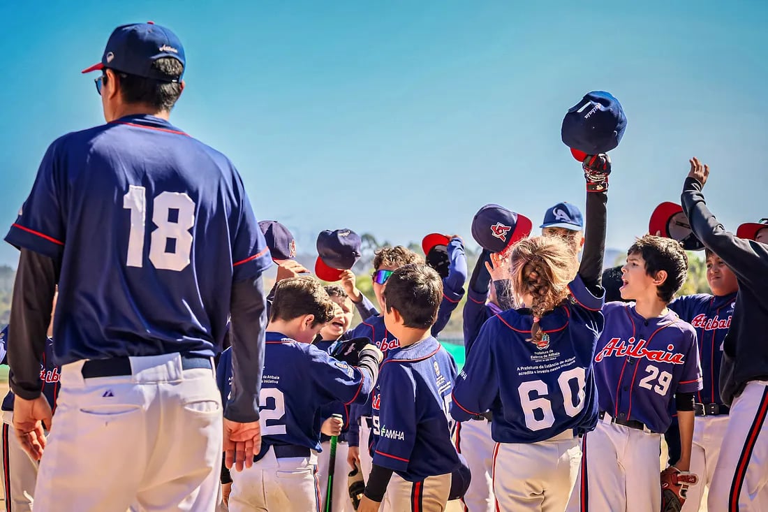 Este ano, Atibaia veio com uma abordagem diferente. O time era misto: repleto de meninos do último ano da categoria, mas também de muitos do primeiro ano — que ainda estão compreendendo o jogo, buscando confiança e aprendendo a atuar com o corpo… e com a cabeça. Sabendo disso, o Sensei foi direto: a prioridade não era vencer. Era conseguir jogar todos os jogos para que todos os atletas pudessem ter o gostinho de participar — inclusive todos os pitchers em formação.